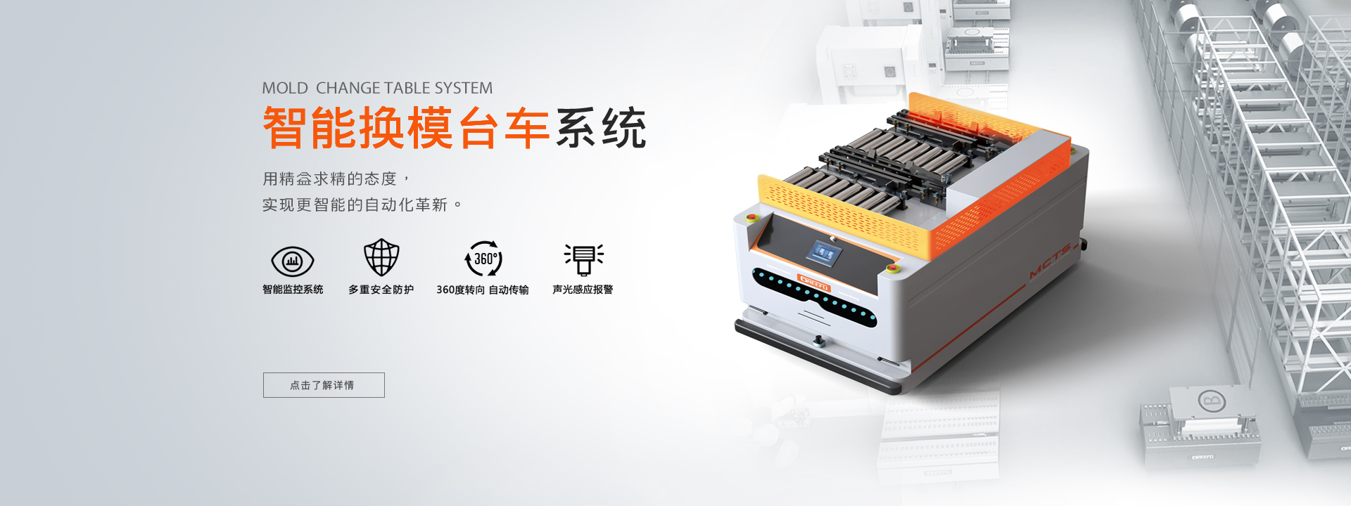 面對市場不斷出現的新挑戰(zhàn),格萊富助力企業(yè)發(fā)展,為工業(yè)生產提供模具裝夾、模具快換、模具搬運、模具倉儲等完善的換模自動化整體解決方案。使企業(yè)不但實現模具快速更換、智能轉運、精益生產,還提高效率,優(yōu)化工藝,強化競爭優(yōu)勢...了解更多